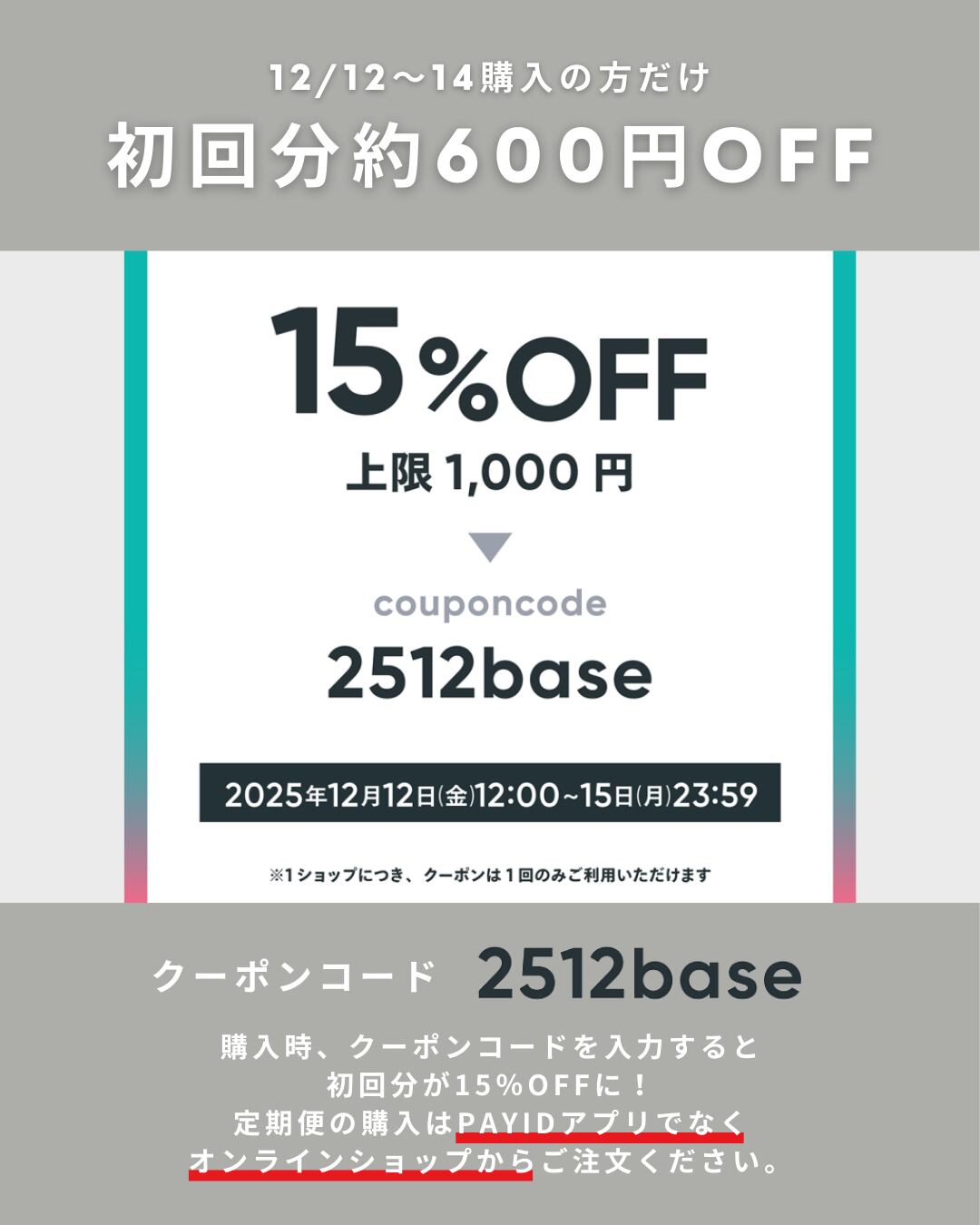 (12/12~14の販売時のみ、クーポンを使用で初回分が15%OFFになります)
