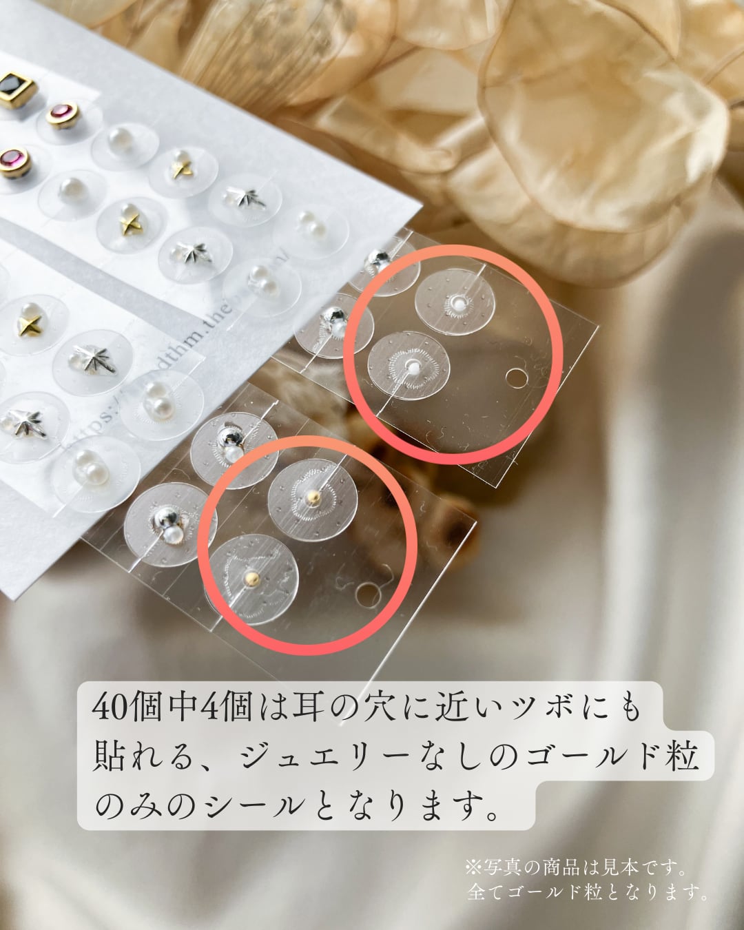 ※耳の穴に近いツボにも貼れるジュエリーなしの粒なしシール4個も毎回含みます。