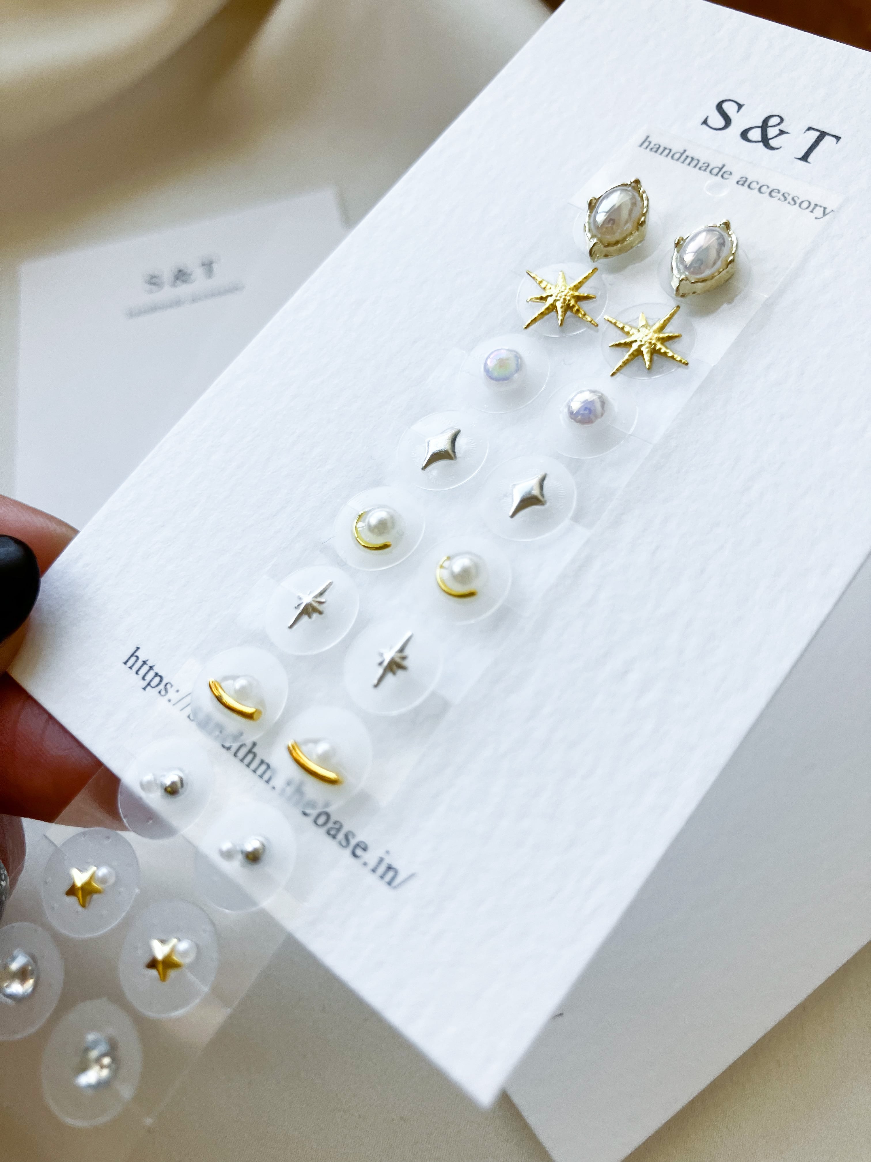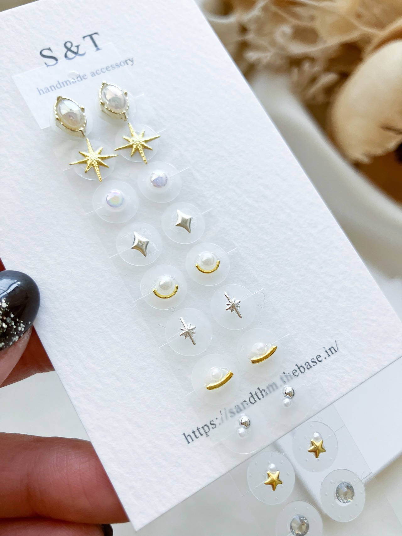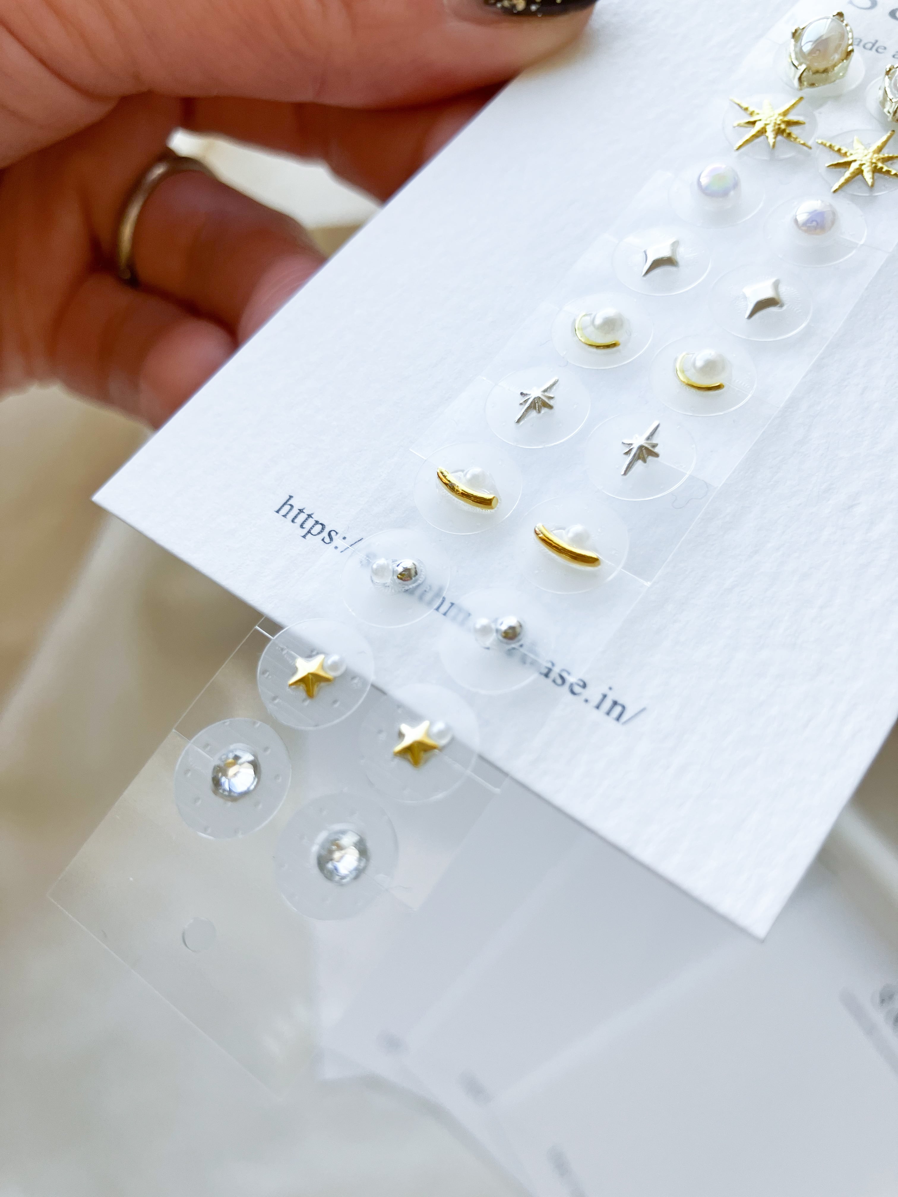 やや大きめなものから小ぶりなものまで、「取れにくいけど可愛い」デザインを1枚のシートに詰め込んだ耳ツボジュエリー。完売次第、販売終了となります。