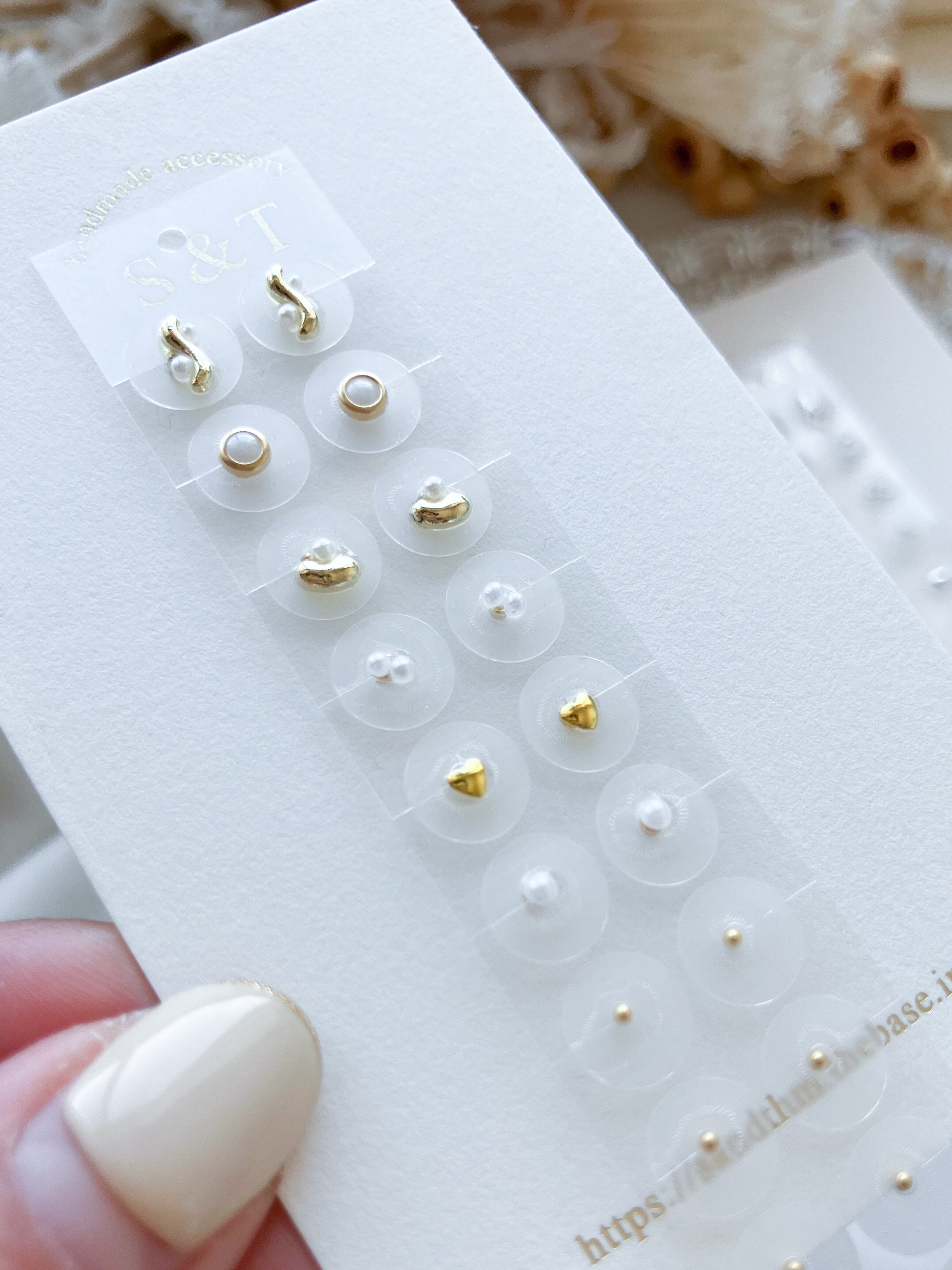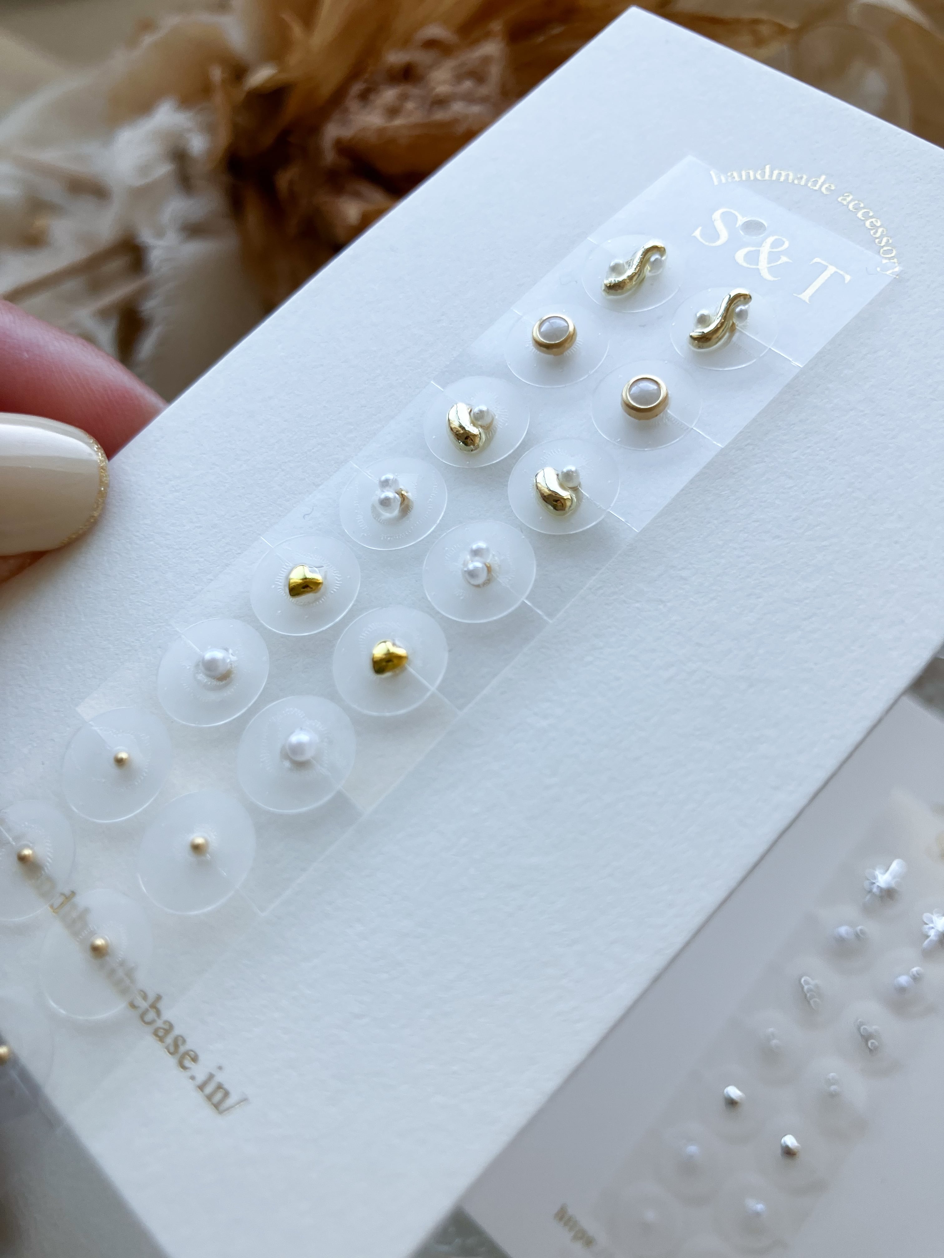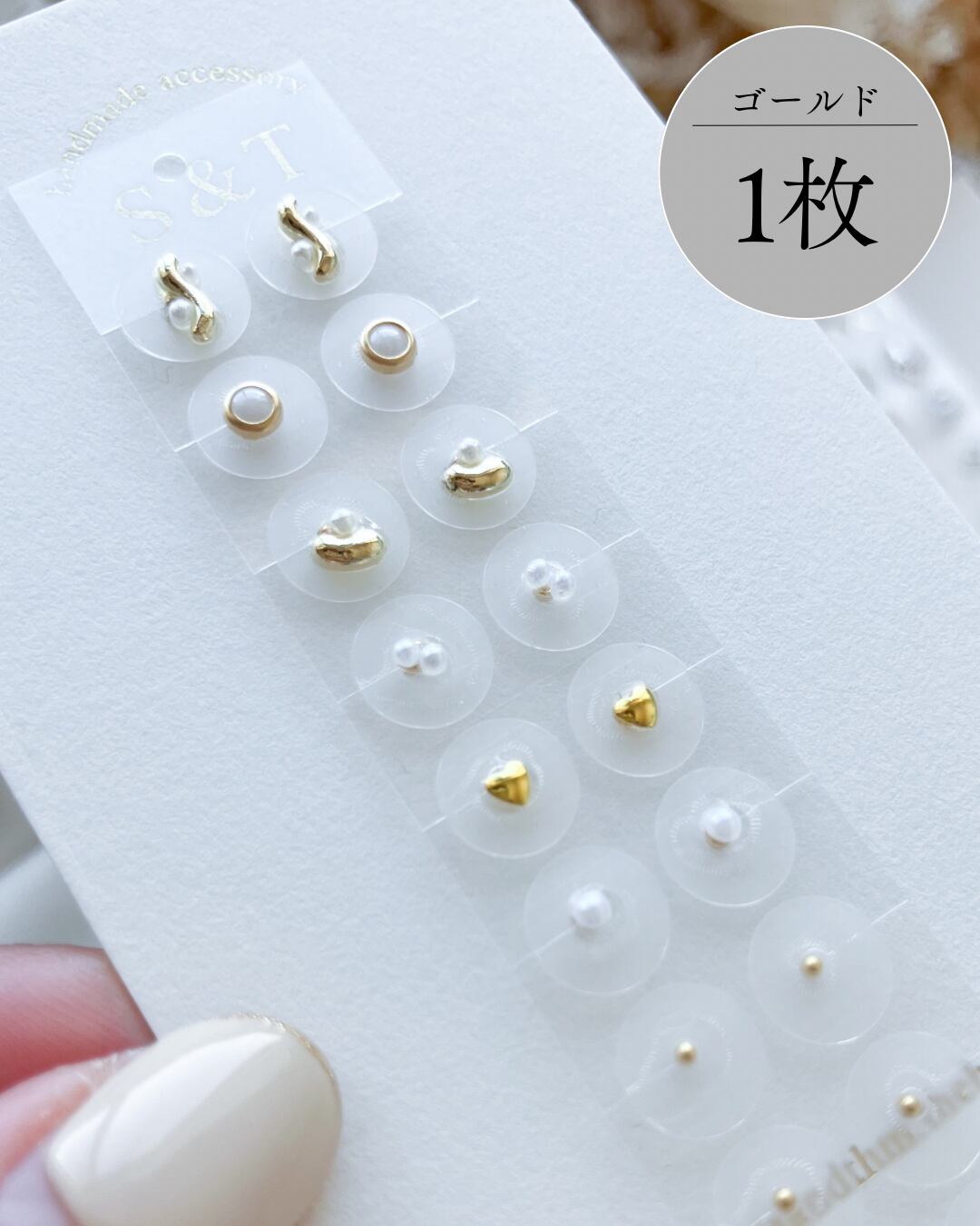 ステンレスまたは金属アレルギー対応のパール粒お好きな方をお選びください。(粒の色はステンレスはゴールド、パール粒はホワイトとなります)
