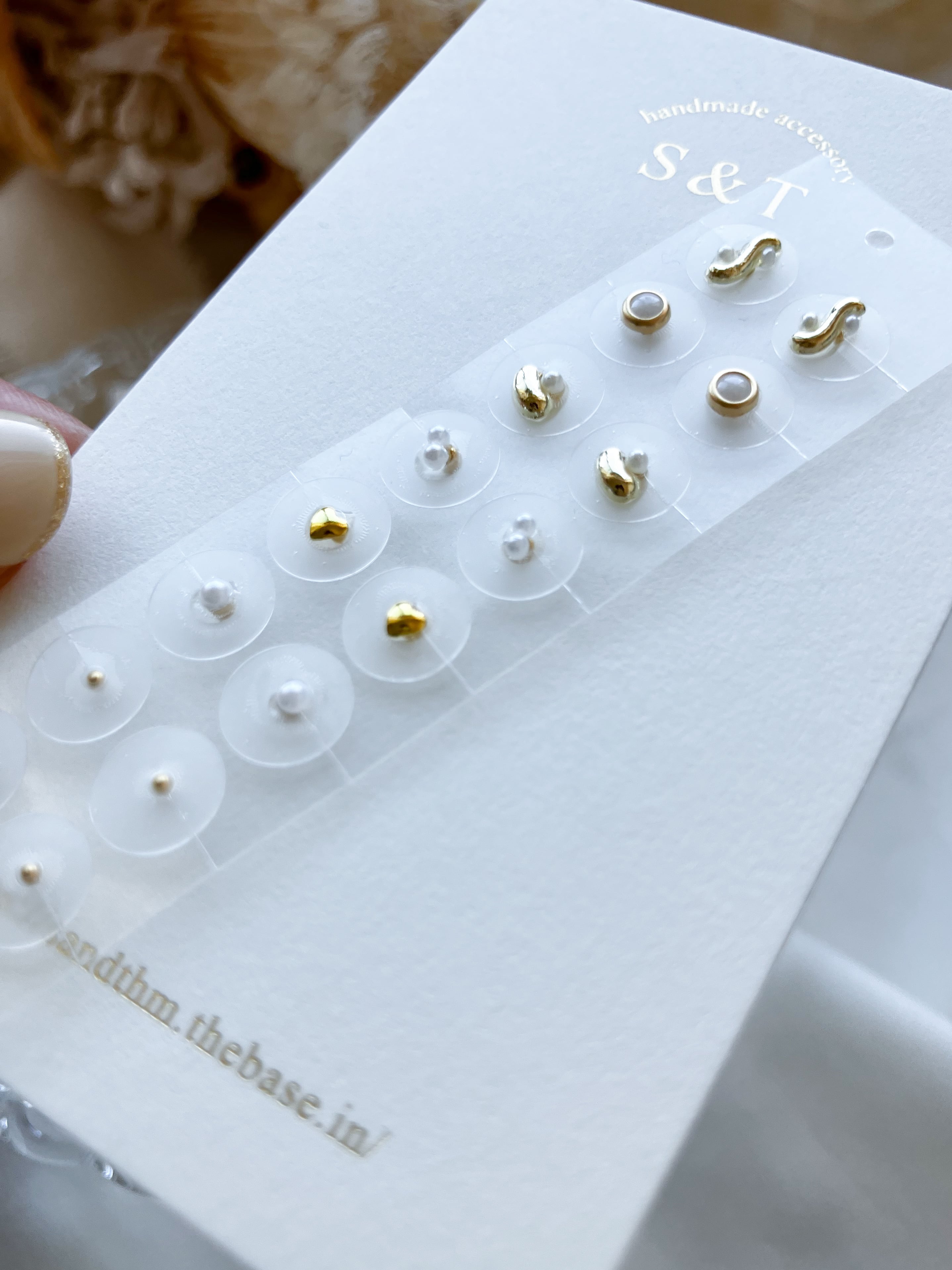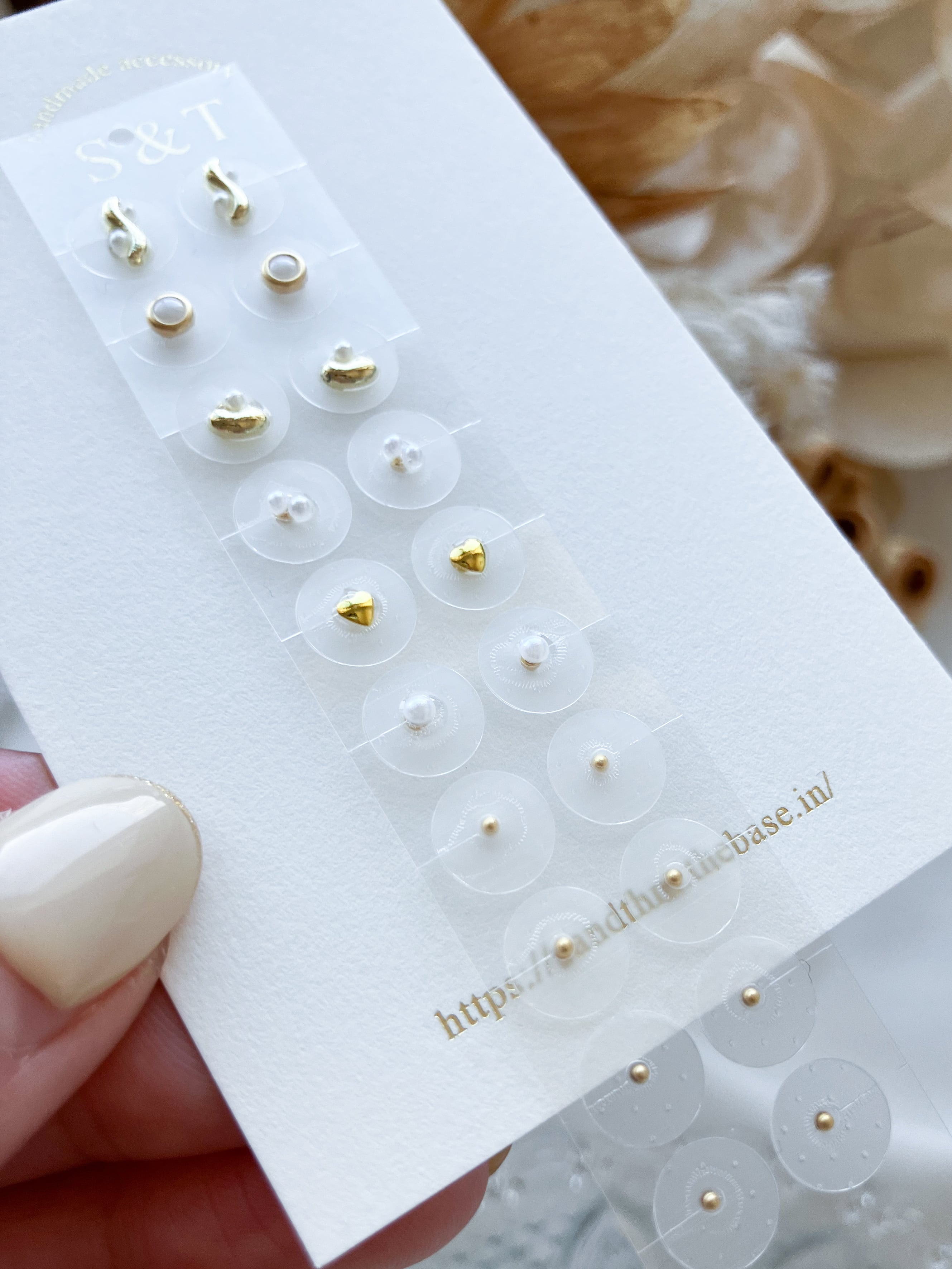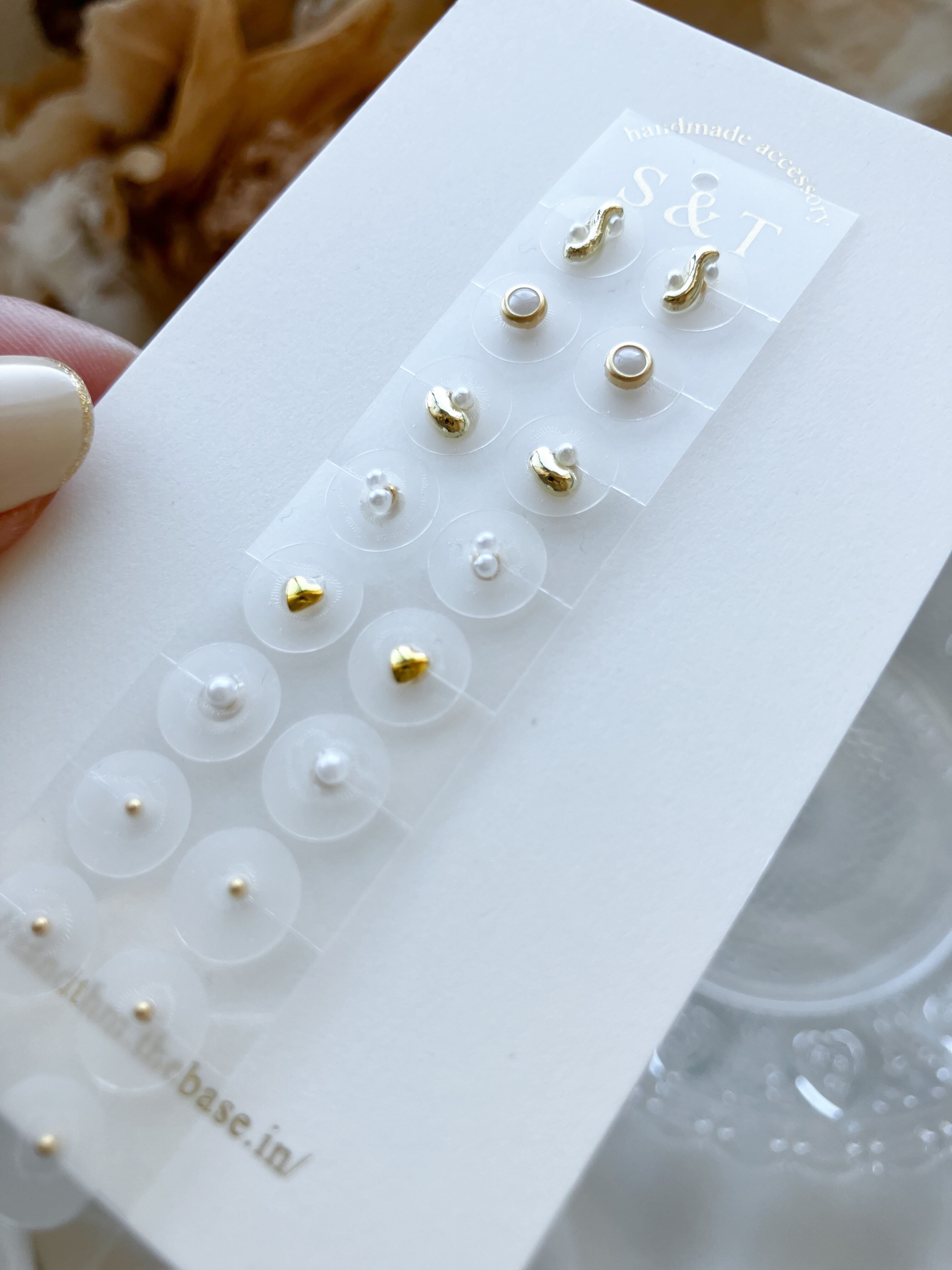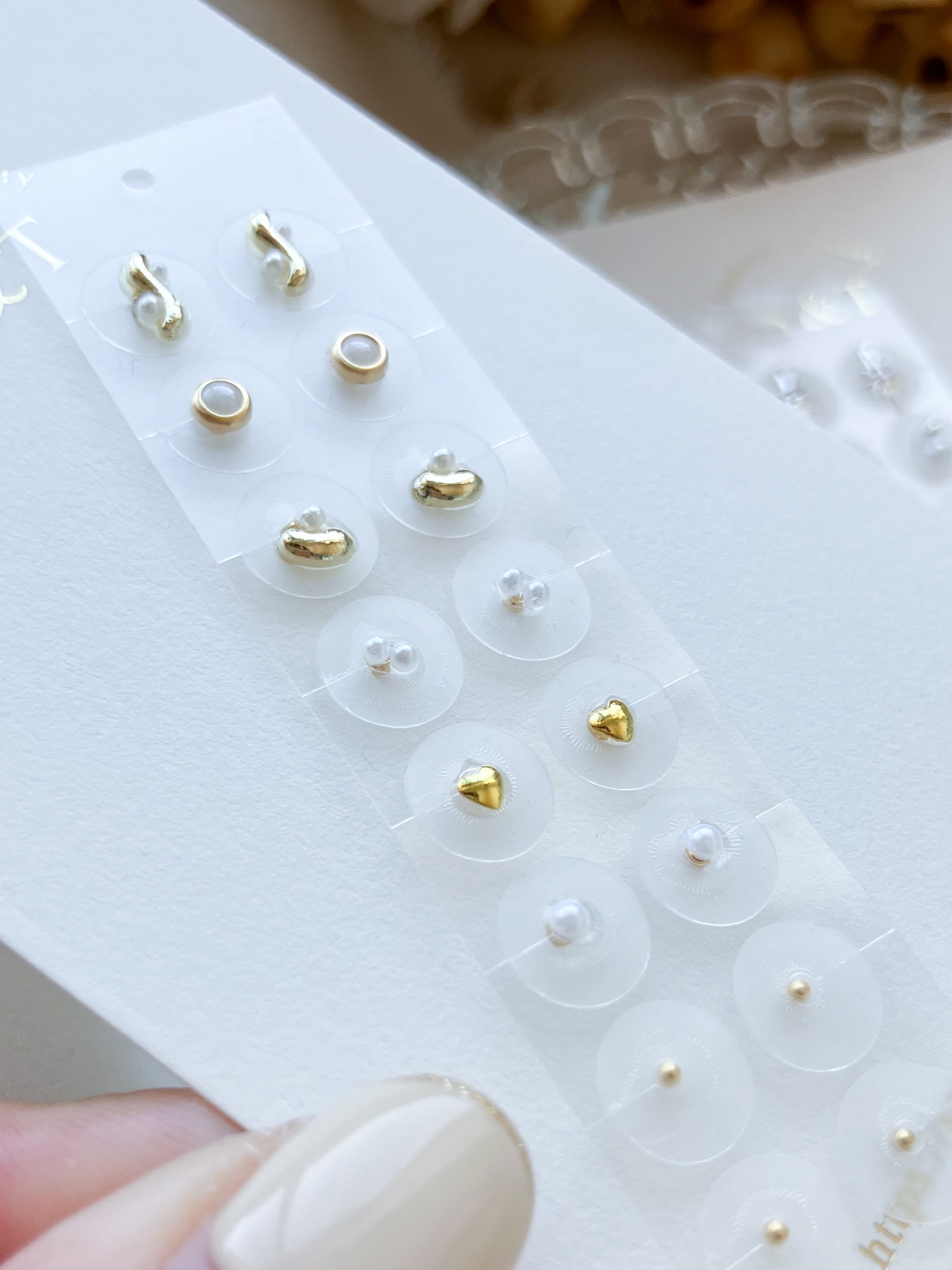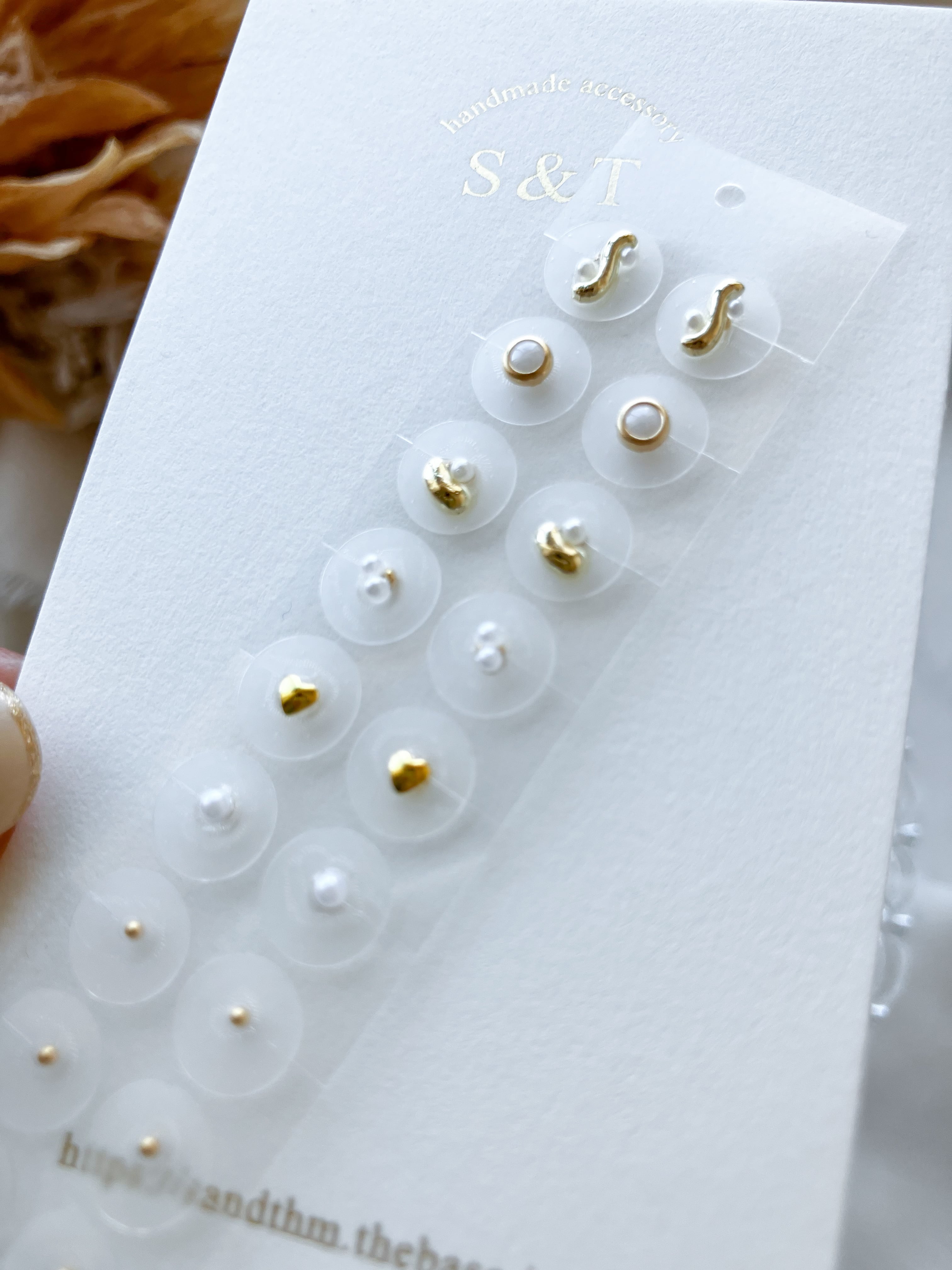 大中小、ちょうどいいサイズを組み合わせたゴールドメインの耳ツボジュエリー。