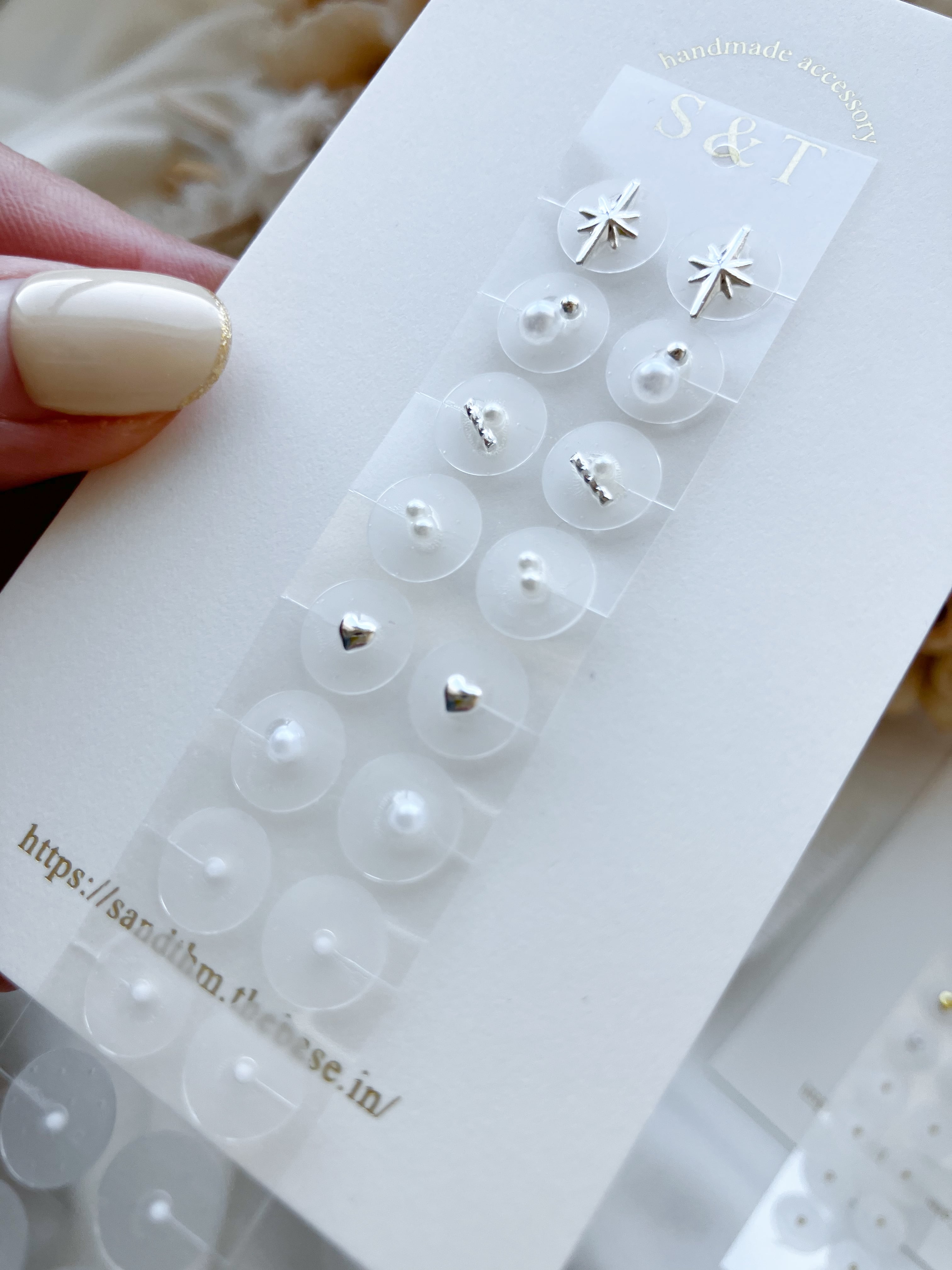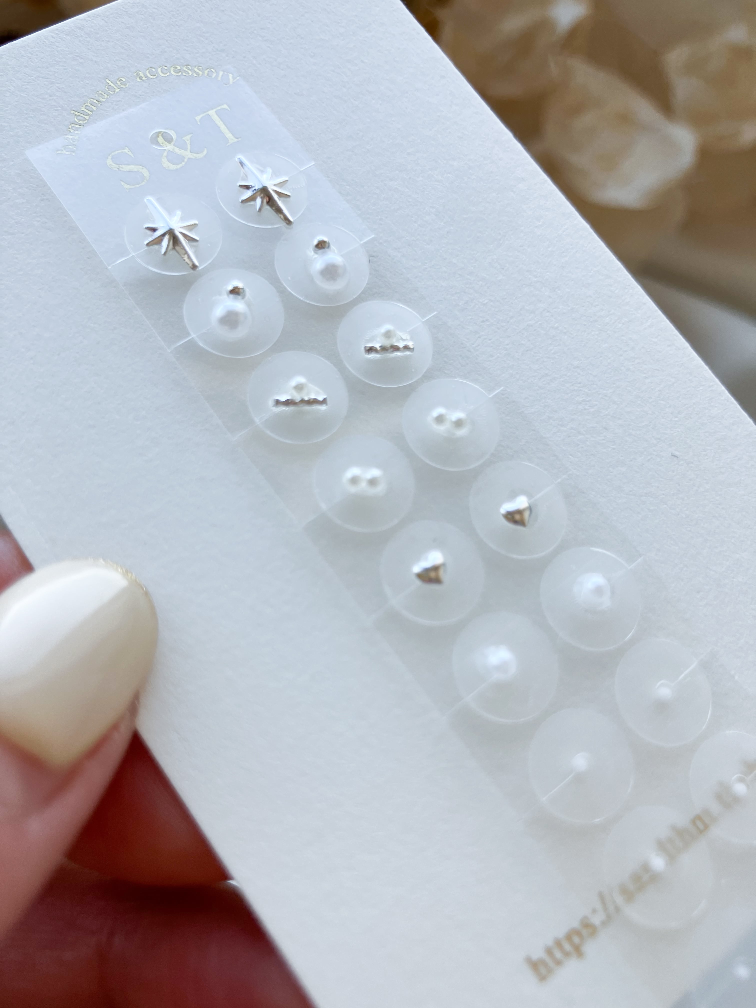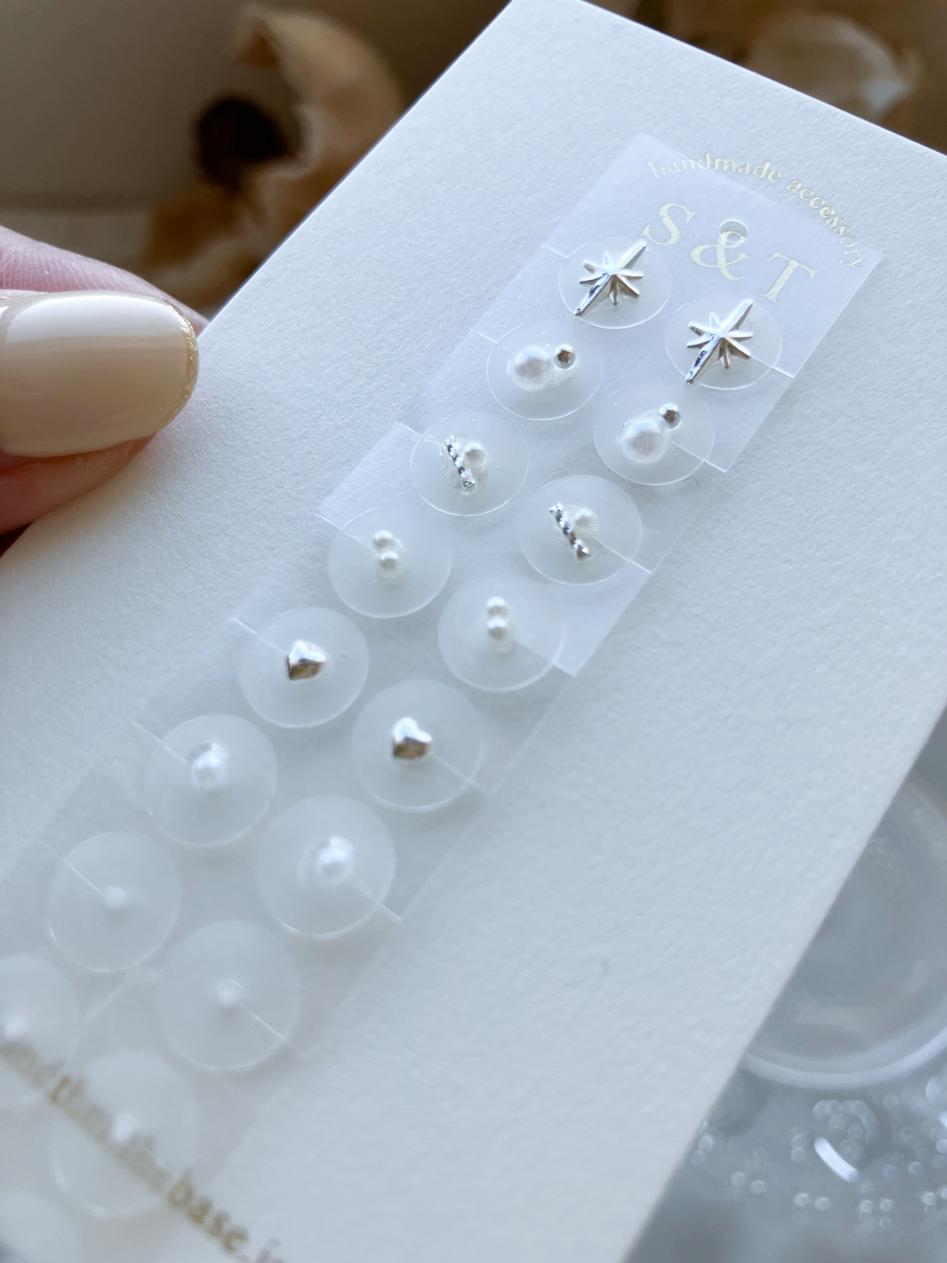 大中小、ちょうどいいサイズを組み合わせたシルバーメインの耳ツボジュエリー。